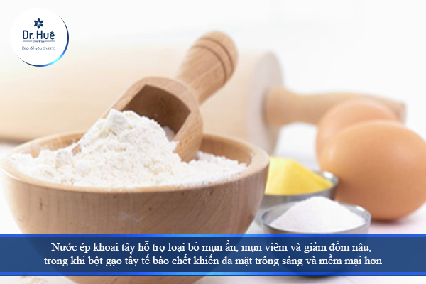 Nước ép khoai tây hỗ trợ loại bỏ mụn ẩn, mụn viêm và giảm đốm nâu, trong khi bột gạo tẩy tế bào chết khiến da mặt trông sáng và mềm mại hơn. Nước chanh se khít lỗ chân lông, và mật ong giữ cho da được giữ ẩm.