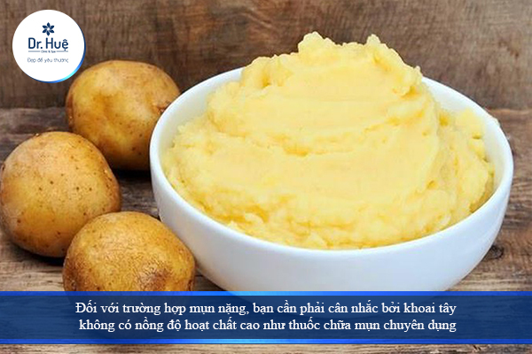 Bạn có thể dùng khoai tây để điều trị những tình trạng mụn nhẹ nhờ những đặc tính hữu dụng nêu trên. Nhưng đối với trường hợp mụn nặng, bạn cần phải cân nhắc bởi khoai tây không có nồng độ hoạt chất cao như thuốc chữa mụn chuyên dụng. Nếu da mặt bạn có nhiều mụn ẩn, mụn bọc, mụn viêm sưng thì khoai tây không phải là liều thuốc dành cho bạn.